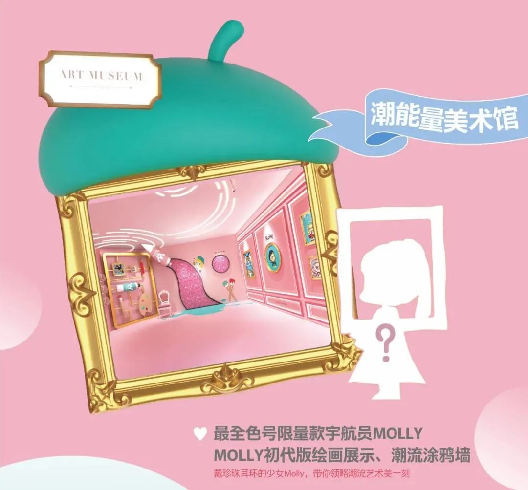 “Molly美一刻拾光”重慶首展夢(mèng)幻啟幕,超300平Molly夢(mèng)之街,7大主題場(chǎng)景,10色宇航員特展,5米Molly粉公主,還有Molly×國家寶藏李白款吊卡限量發(fā)售。
