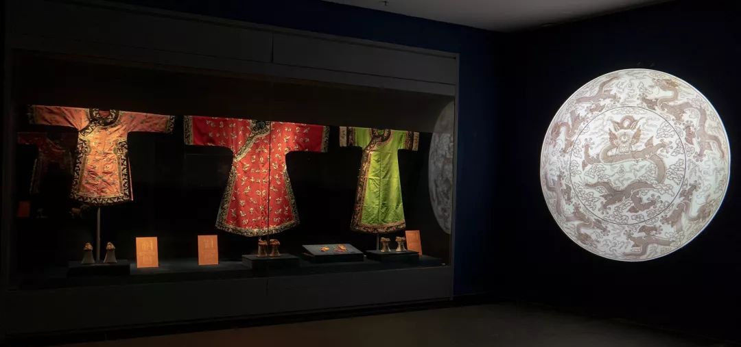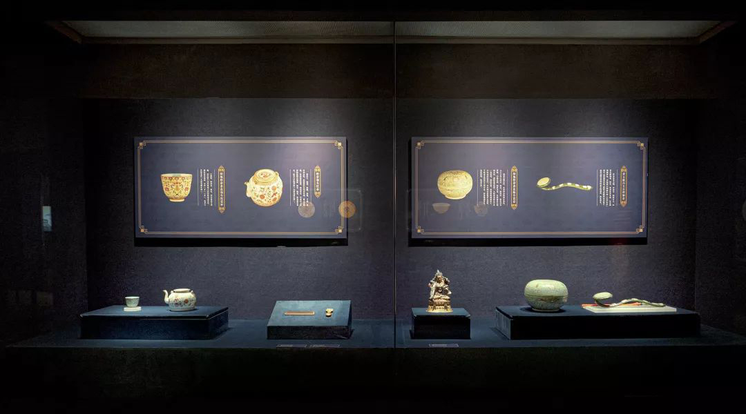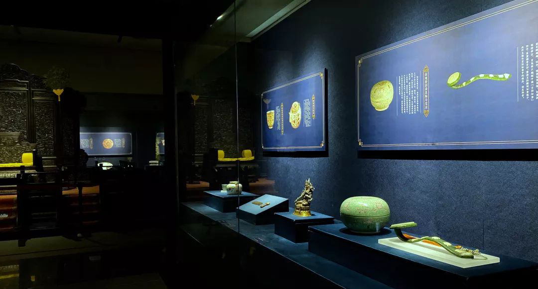 展廳構成要素用最純粹的現代形式設計語言敘述一個城市歷史沉淀和人文風貌氣象,讓歷史文化的厚重感、清朝文化等在現代設計語言闡釋下,在現代展示手段的烘托中,得以淋漓盡致的表達。展廳色彩氛圍營造通過對此次展覽展陳大綱的理解,以及歷史背景的分析,再結合展出文物提煉出來色彩,力求與展出文物構成和諧的色彩體系,突出展示皇室藝術品絕高的藝術造詣及奢華的審美風向。