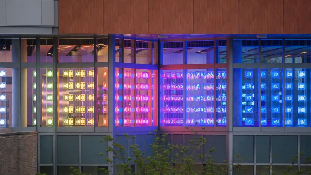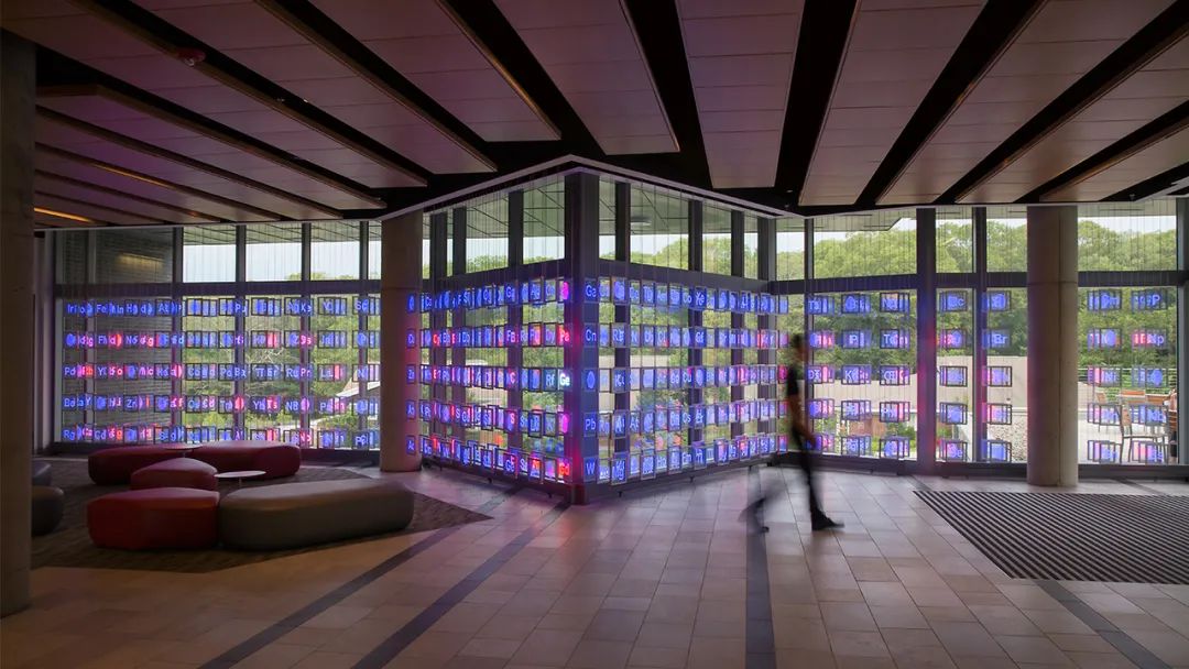 奧裔美籍藝術家歐文·雷德爾(Erwin Redl)的燈光互動裝置藝術作品“ GeNeSiS”,此項目位于羅德島大學博普雷化學與法醫(yī)學中心的中庭,由480個LED燈板組成,而最有趣的地方是它通過元素周期表的符號來演奏詩歌。