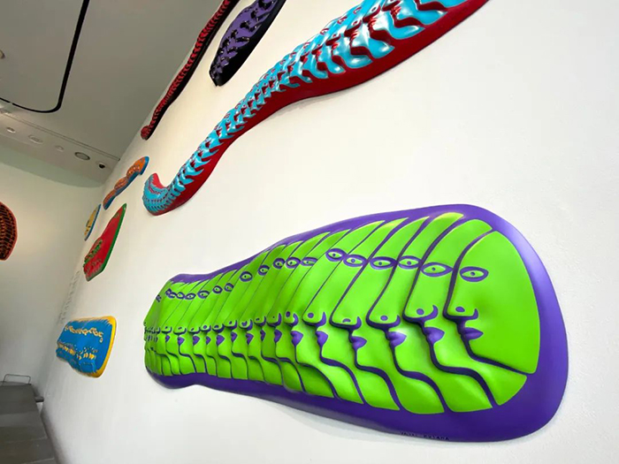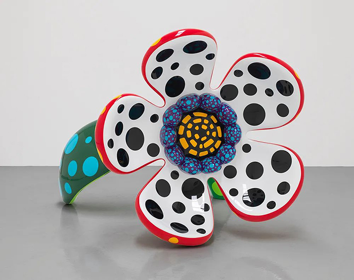 展品包括位于1樓入口處的《永遠に続く女の魂》,通過鋁鑄制制成女性輪廓,仿佛漂浮在空中的輕盈感,用色鮮明強烈。美術(shù)館4樓也有立體的《天空にささげたわたしの心のすべてをかたる花たち》銅鑄造作品。兩件作品都是草間彌生于2020年創(chuàng)作的,看來她近年喜歡利用鋁及青銅的材質(zhì)創(chuàng)作。