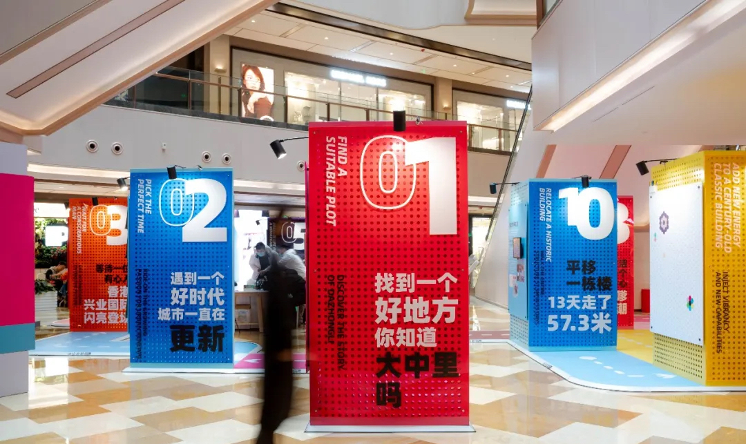 一場(chǎng)建造史特別展覽活動(dòng)策劃用15個(gè)不同色彩的立體展板組成了“歷史迷宮”