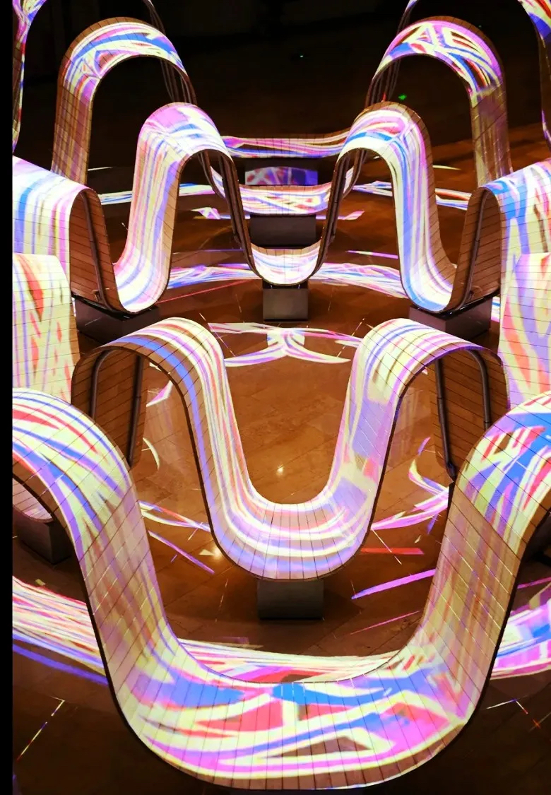 這次展覽加入了先鋒元素,運(yùn)用數(shù)字投影技術(shù)的藝術(shù)裝置,激活了 《 請就座 》 在商業(yè)室內(nèi)空間的魅力,這也是采用數(shù)字投影技術(shù)的Mapping裝置首次在廣州的商業(yè)空間展示,數(shù)字藝術(shù)美學(xué)激活了作品本身循環(huán)往復(fù)、無限流動(dòng)的造型特征,為公眾帶來與眾不同的觀看及互動(dòng)樂趣,同時(shí)這也是廣州太古匯創(chuàng)新應(yīng)用數(shù)字藝術(shù),打造時(shí)尚的年輕化品牌形象的大膽嘗試。本次藝術(shù)裝置為公眾帶來與眾不同的觀看及互動(dòng)樂趣,同時(shí)這也是廣州太古匯創(chuàng)新應(yīng)用數(shù)字藝術(shù),打造時(shí)尚的年輕化品牌形象的大膽嘗試。