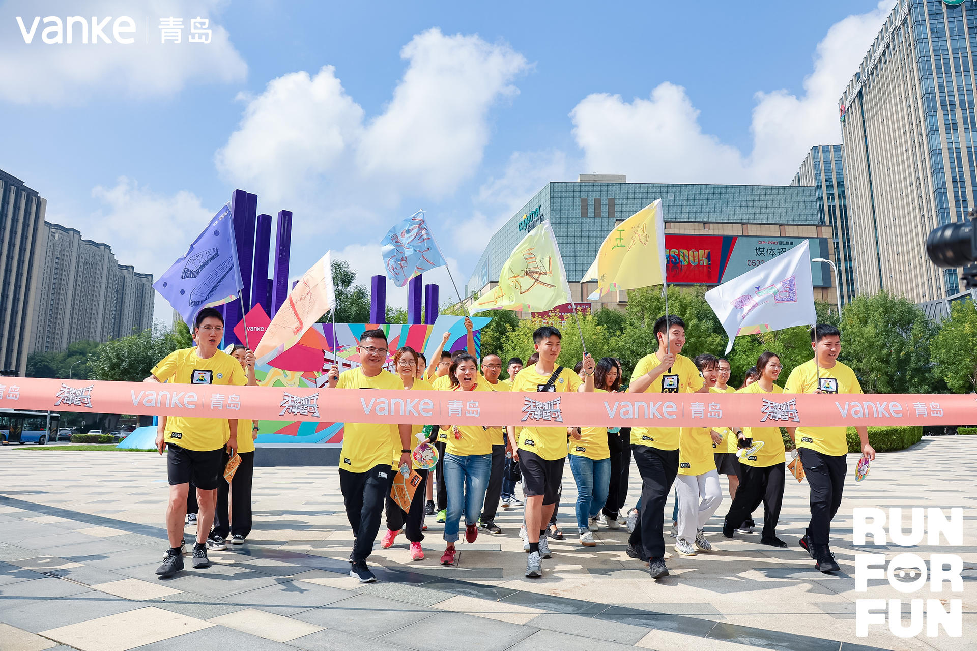 青島萬科組織員工參與“2021萬科夏季線上樂跑賽”尋找城市彩蛋—青島萬科城市樂跑賽賽中賽。本次樂跑賽以小組形式參與,到場簽到后,為自己的隊伍DIY了本隊的旗幟,并根據(jù)闖關(guān)卡上的提示尋找城市彩蛋。開始尋寶前大家由啦啦隊為大家表演了精彩的舞蹈,并帶領(lǐng)大家進行熱身運動。隨后百米沖刺的速度到達各個任務(wù)點進行打卡,在完成任務(wù)過程中將無畏前行的精神貫徹到底,并最終完成了任務(wù)。
