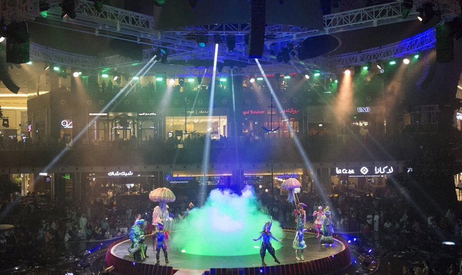 卡塔爾購(gòu)物中心的綠洲是一個(gè)沉浸式娛樂(lè)的來(lái)源,設(shè)計(jì)精美,以壯觀的現(xiàn)場(chǎng)表演吸引觀眾。綠洲讓購(gòu)物者進(jìn)入另一個(gè)世界,具有變革性的燈光和音響設(shè)計(jì),讓觀眾們從各個(gè)角度都能感受到眼花繚亂的視聽(tīng)效果。它的360度旋轉(zhuǎn)劇場(chǎng)舞臺(tái)是購(gòu)物廣場(chǎng)體驗(yàn)的核心,讓消費(fèi)者在一個(gè)購(gòu)物中心內(nèi)體驗(yàn)世界上第一個(gè)商場(chǎng)內(nèi)360度專(zhuān)業(yè)劇場(chǎng)不可思議的視聽(tīng)感受,這里有定制的演出,其規(guī)模是前所未有的,并擁有一個(gè)專(zhuān)業(yè)的常駐演出團(tuán)。多達(dá)25名舞者、歌手、演員和雜技演員可以隨時(shí)進(jìn)行現(xiàn)場(chǎng)表演。