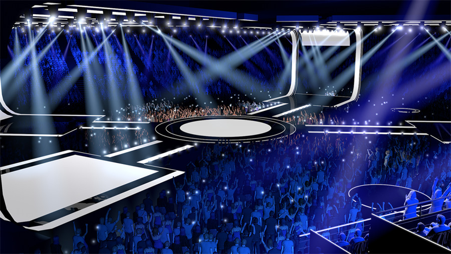 受到西班牙畢爾巴鄂從工業(yè)港口城市轉(zhuǎn)型為標(biāo)志性藝術(shù)目的地的啟發(fā),此次歐洲音樂(lè)獎(jiǎng)設(shè)置的布景是對(duì)藝術(shù)變革力量的弘揚(yáng)?,F(xiàn)場(chǎng)由一個(gè)中央舞臺(tái)和四個(gè)衛(wèi)星舞臺(tái)構(gòu)成,設(shè)計(jì)了一種裝飾,將中央舞臺(tái)與4個(gè)走秀通道和相鄰的衛(wèi)星舞臺(tái)相連。所有這些元素都與從天花板到舞臺(tái)的連續(xù)流動(dòng)曲線相連,并以LED面板和LED燈條突出顯示。天空中經(jīng)過(guò)特殊設(shè)計(jì)的完整的支撐結(jié)構(gòu),能夠安裝所有LED和照明設(shè)備。每一場(chǎng)表演都轉(zhuǎn)換了五個(gè)多媒體場(chǎng)景,視頻在舞臺(tái)布景上流動(dòng),就像畫(huà)家在畫(huà)布上作畫(huà)一樣,讓觀眾身臨其境,仿佛看到藝術(shù)作品在他們眼前栩栩如生。