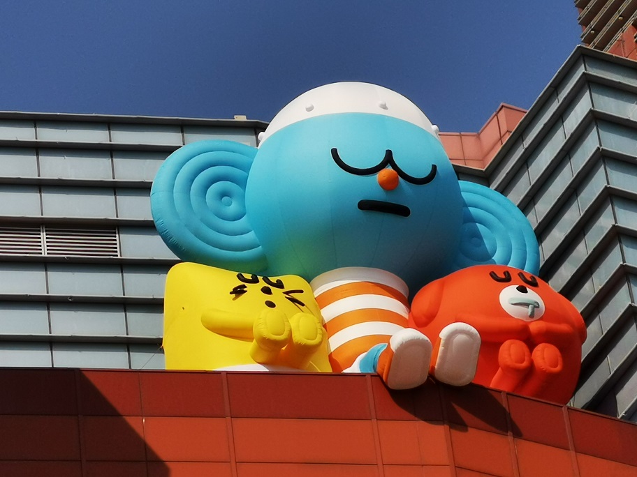近5噸重、7米高的巨型雕塑是手持激光槍和噴射背包率先“著陸”的MOMO,矗立于朝陽(yáng)大悅城正門(mén)廣場(chǎng)。每天陽(yáng)光穿透晨霧的一瞬,讓朝陽(yáng)下閃光的MOMO喚醒整座城市!視線移到樓頂,還有三只“巨型萌物”等你發(fā)現(xiàn)哦~
