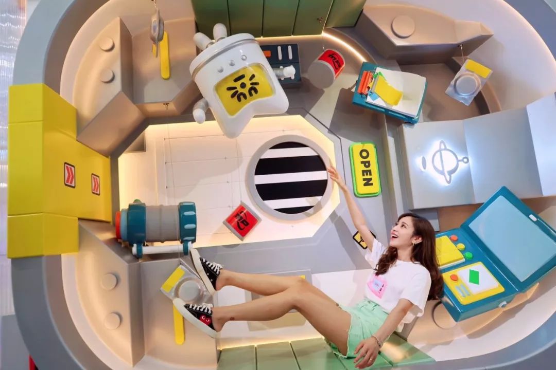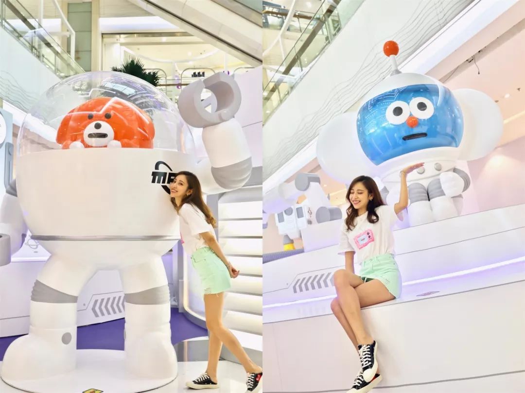 「心際航行——MOMO PLANET主題展」以“太空飛船”為設(shè)計(jì)靈感,中庭大型懸掛裝置營(yíng)造出星球懸浮的夢(mèng)幻場(chǎng)景;廣場(chǎng)的巨型雕塑和“搶占”了屋頂?shù)娜≈?,可?ài)值爆表;還有由著名日本設(shè)計(jì)團(tuán)體TASKO、國(guó)際知名特效團(tuán)隊(duì)PIXOMONDO 聯(lián)手打造沉浸式空間裝置,為你帶來(lái)極致的交互體驗(yàn),均是此次主題展的匠心之作。
