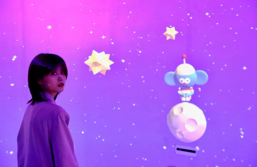這里是MOMO PLANET與日本設(shè)計(jì)團(tuán)隊(duì)TASKO聯(lián)手打造的沉浸式交互體驗(yàn)空間,使出你全部的本事,聲音語(yǔ)言也好,肢體語(yǔ)言亦可,與環(huán)幕上的角色進(jìn)行互動(dòng)吧!超萌超治愈的三小只專(zhuān)門(mén)拯救不開(kāi)心哦。該空間每次展示60秒,一次可容納3名觀眾,每個(gè)人都可以擁有和三小只的專(zhuān)屬互動(dòng)時(shí)間,絕對(duì)是本次展覽不容錯(cuò)過(guò)的體驗(yàn)!
