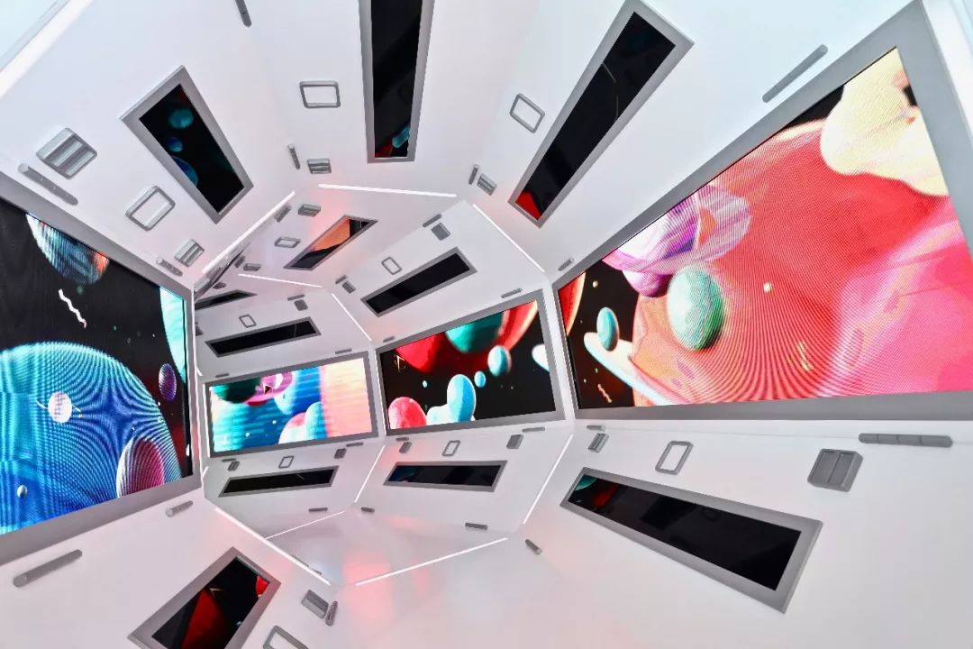 在認(rèn)真閱讀主展區(qū)入口LED播放的登艙須知后,你將踏進(jìn)「消磁走廊」。透過(guò)舷窗,紛繁的宇宙在眼前展開(kāi),仿佛置身電影中的太空艙。超逼真的模擬宇宙視覺(jué)動(dòng)畫(huà),讓你忍不住想伸出手觸碰周?chē)〉男乔?。從古老的幻想出發(fā),去向未知的未來(lái),此刻,我們身處哪一個(gè)次元?