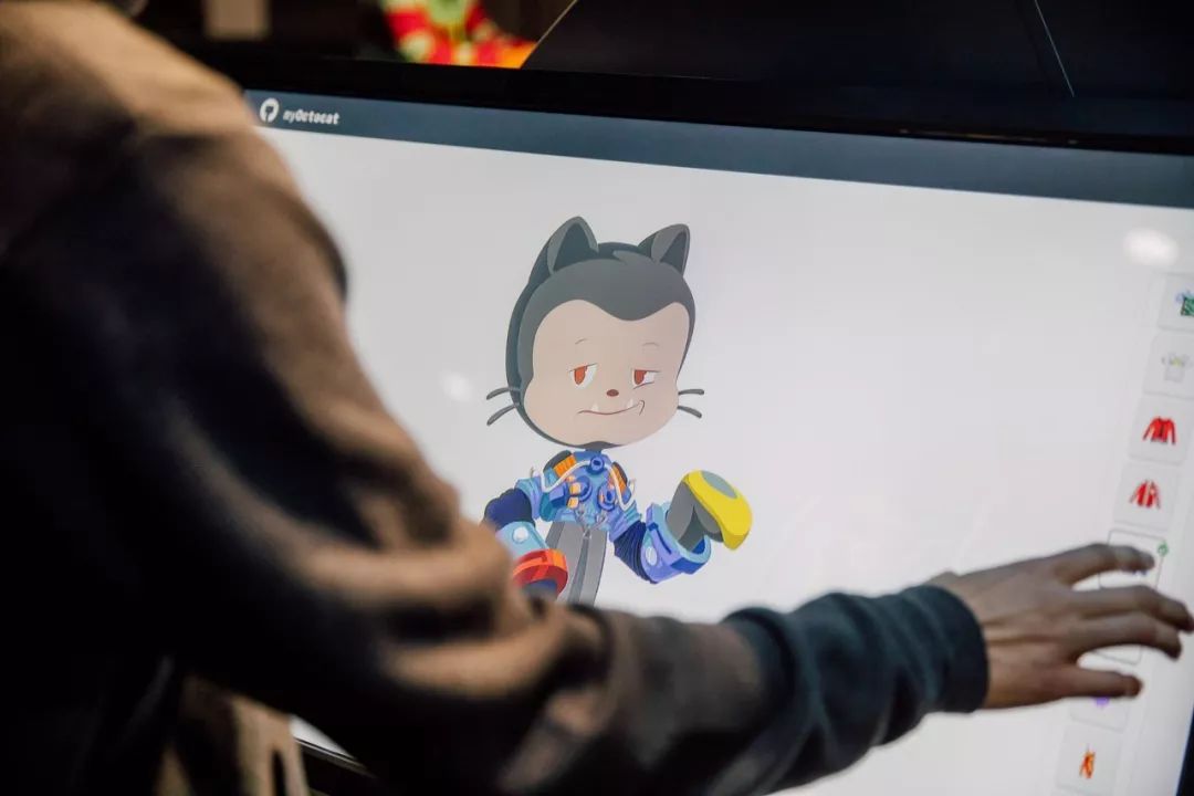 GitHub深受喜愛的吉祥物夢(mèng)娜(Mona)是一只擬人化的八爪貓,半貓半章魚,有五個(gè)像章魚一樣的手臂,既是形象大使,也是現(xiàn)場(chǎng)互動(dòng)體驗(yàn)設(shè)計(jì)的靈感來(lái)源。一個(gè)巨大的雕塑版本的夢(mèng)娜,成為了現(xiàn)場(chǎng)最受歡迎的拍照對(duì)象。在現(xiàn)場(chǎng)的“夢(mèng)娜的衣櫥”里提供了以該吉祥物開發(fā)的服裝與配飾。