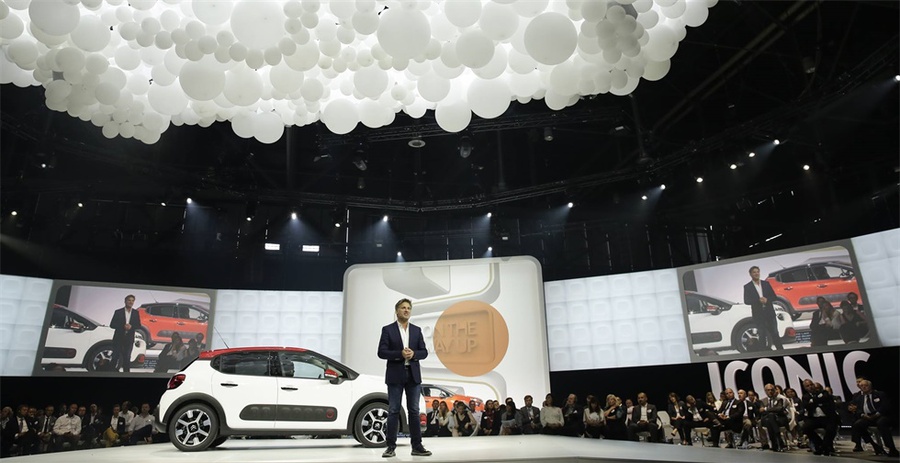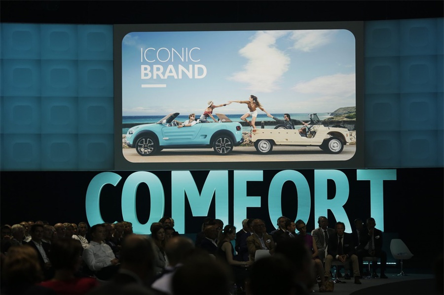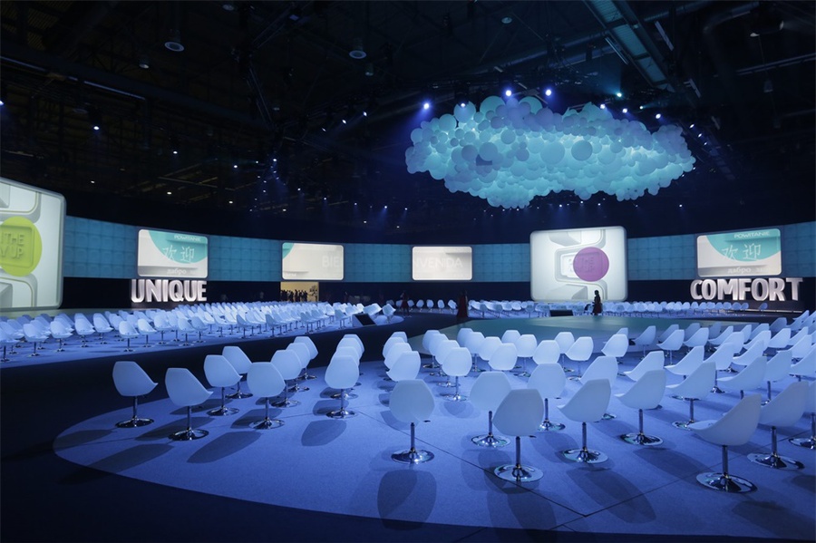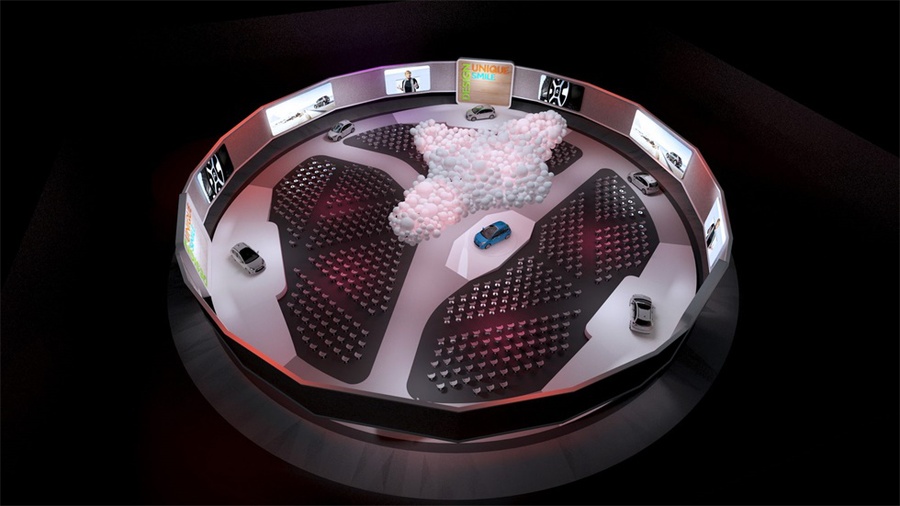 在日內(nèi)瓦舉行的雪鐵龍世界大會(huì)是一個(gè)展示品牌新車型的活動(dòng),包括一個(gè)主要的全體會(huì)議和一個(gè)展覽空間。在這里,全體會(huì)議的舞臺(tái)設(shè)計(jì)沿著一條環(huán)形路線展開(kāi),汽車擺放在觀眾座位旁,巨大的屏幕在會(huì)場(chǎng)的四周展開(kāi),環(huán)線在中央舞臺(tái)結(jié)束。