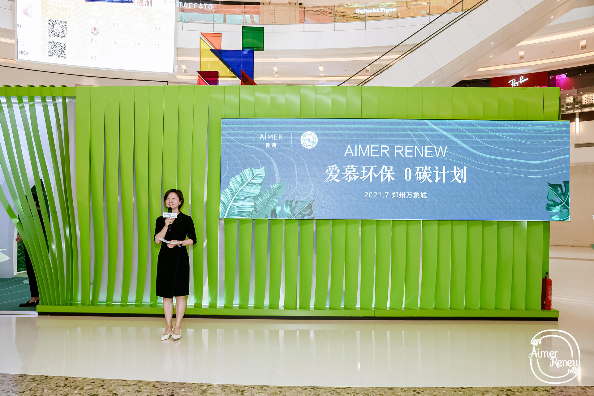 AIMER RENEW愛慕環(huán)保0碳計劃快閃店亮相鄭州萬象城,快閃店圍繞植物元素及低碳生活營造氛圍,將植物主題科技藝術(shù)裝置、綠色出行互動游戲等融入其中,為消費者帶來環(huán)保新體驗,為低碳生活加分。
