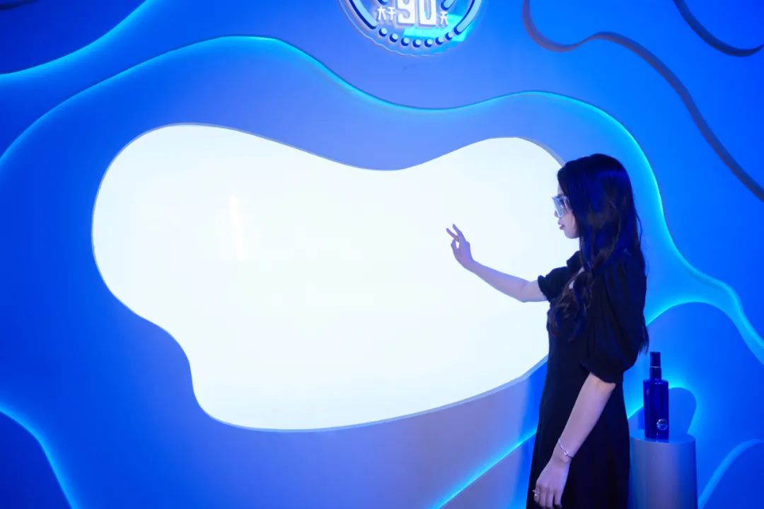 “時光窖池”是以時光洞穴為靈感打造的空間,剛步入神秘的氣息就鋪面而來,整個空間是以曲線、藍白燈光等元素創(chuàng)造的一個沉浸式多維空間,大小不同的異形窖池、流動線條,特別炫酷!