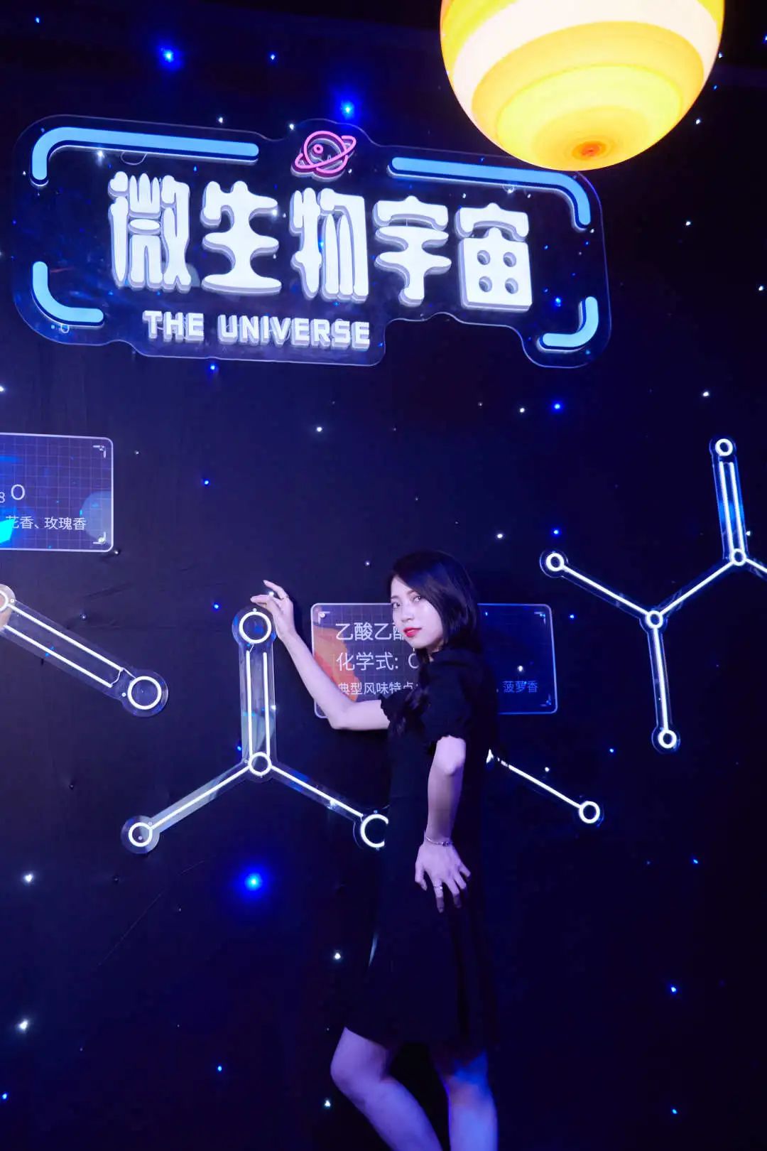 大量的微生物代謝出的風(fēng)味物質(zhì)就像穿梭在太空的行星,有如置身于浩渺的宇宙。而墻上的分子式則把人帶入到微觀世界,不斷變幻、流動、擴散的微生物,連接著真實的感官世界,仿佛讓人沉浸在浪漫的星空之中。而且,在這里凹造型也太酷了!咔咔咔,完全停不下來!一瓶好酒的密碼就是這些有益微生物菌群,而釀造百年瀘州老窖窖齡酒的老窖池的窖泥種就富含了上千種有益微生物,且還在不斷繁衍。