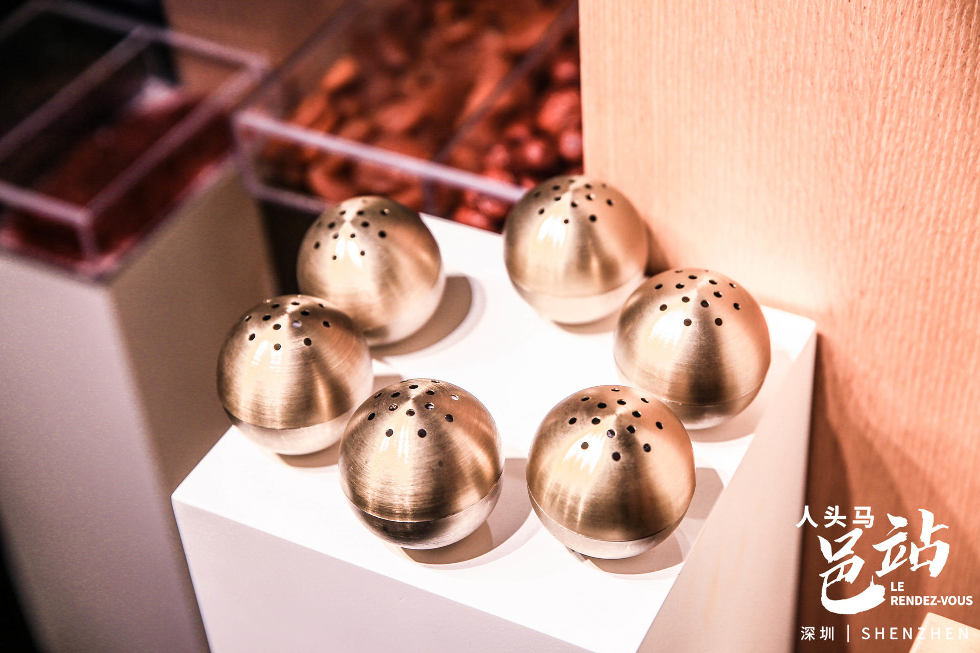 在饕餮閃鑒區(qū),來賓則有機(jī)會(huì)品鑒人頭馬X.O優(yōu)質(zhì)香檳區(qū)干邑,高低錯(cuò)落的金色立柱上擺放著藏紅花、杏脯、丁香、橙子等食材,象征著馥郁酒液所具有的各種芬芳?xì)馕?,為品鑒者帶來層次豐富的感官享受。