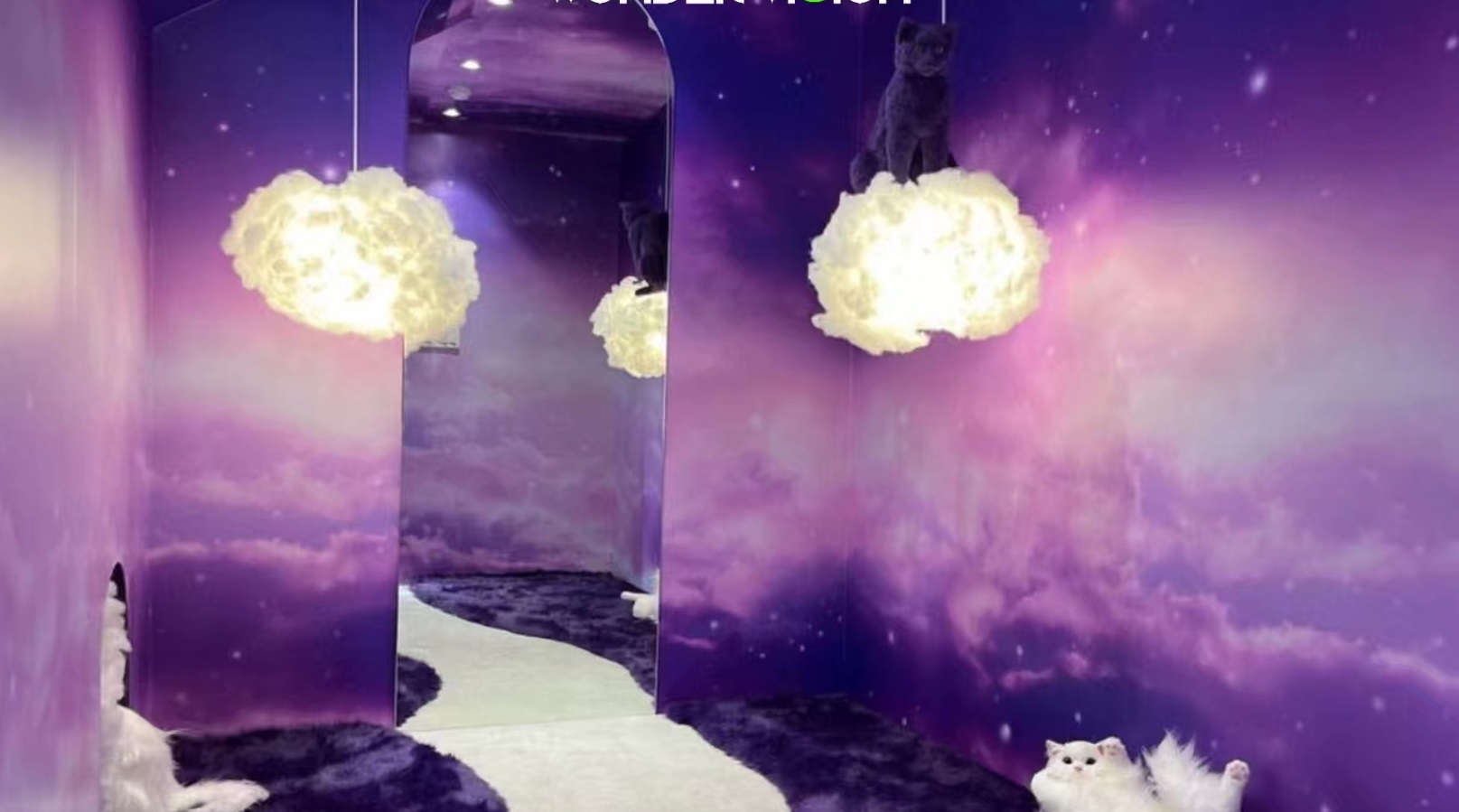 為慶祝 NERDY 23FW系列的發(fā)布,品牌在首爾呈現(xiàn)巨型貓咪快閃,一切源自NERDY的幻想人工智能實驗室。巨型貓咪給人強烈的視覺沖擊,紫色的毛毛屋,瞬間點燃你的少女心,獨特的剪裁和設(shè)計風(fēng)格,和其他的店鋪瞬間產(chǎn)生鮮明的設(shè)計區(qū)隔。