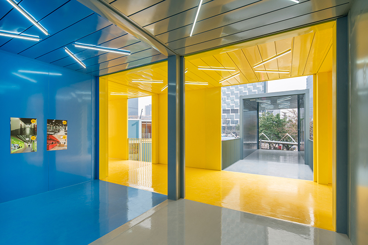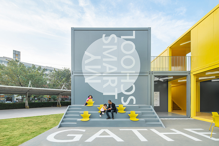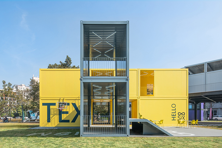 Crossboundaries最新裝置由12個(gè)“箱式房打包箱”裝配式單元 (以下簡(jiǎn)稱(chēng)”箱式單元“)組成,被認(rèn)為是未來(lái)學(xué)校的大膽探索,未來(lái)教育必將隨著社會(huì)關(guān)系而變革。未來(lái)學(xué)校是在社會(huì)中廣泛場(chǎng)所發(fā)生,而裝配式運(yùn)用正好提供了強(qiáng)有力的技術(shù)支持。該設(shè)施是2019屆深圳-香港雙年展主題展覽的一部分,圍繞未來(lái)學(xué)校的未來(lái)教育模式和在教育建筑領(lǐng)域中預(yù)制和模塊化搭建的可能性。本次組展共設(shè)5個(gè)展臺(tái),均采用中建科技提供的標(biāo)準(zhǔn)箱式單元建成。Crossboundaries這次作品被命名為“無(wú)限6”,位于18x18m的場(chǎng)地上。”無(wú)限6“平面上十字交叉的“X”形布局,自然地將18x18米的場(chǎng)地劃分尾4個(gè)獨(dú)立的小廣場(chǎng)。