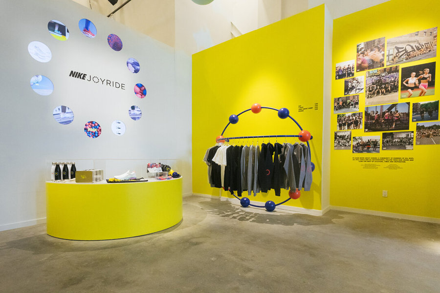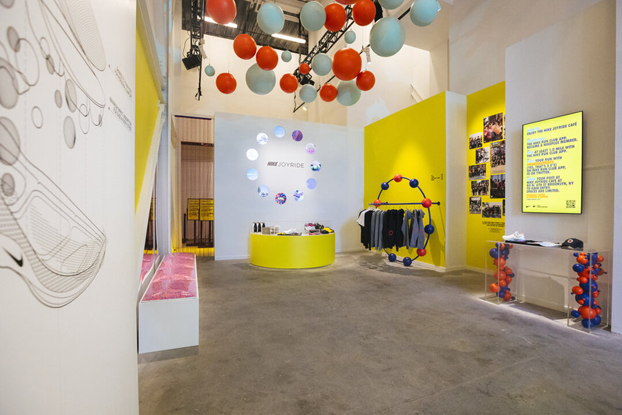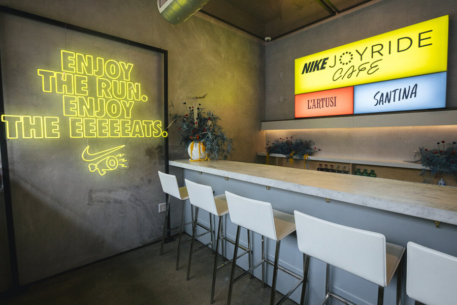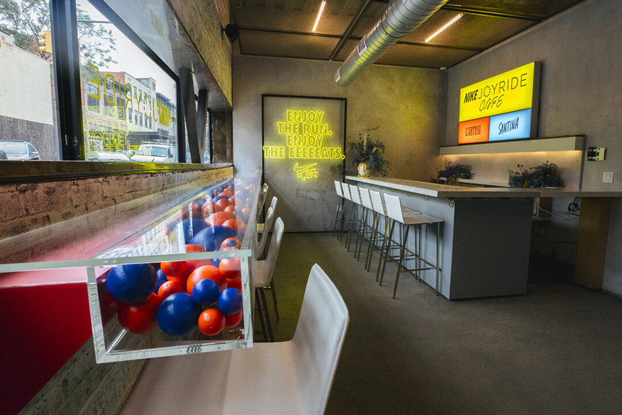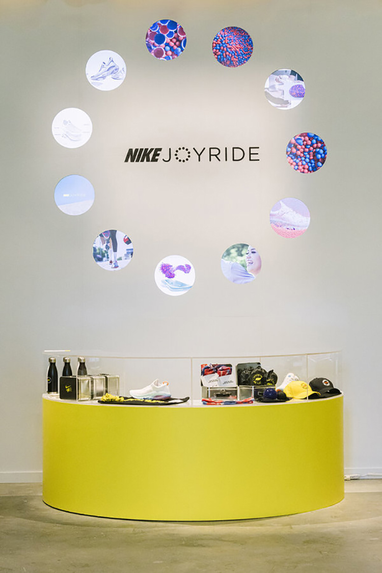 活動執(zhí)行了一個為期三周的零售和餐飲活動,靈感來自耐克的最新創(chuàng)新:Joyride的珠狀鞋底。在耐克的“跑步俱樂部”(Run Club)應(yīng)用上跑了一英里后,客人就可以進入Joyride的咖啡館,咖啡館里有可供選擇的旋轉(zhuǎn)主題盤子,并在透明的臺面坐下,臺面下是丙烯酸樹脂的泡沫球,暗示著新鞋底的創(chuàng)意設(shè)計。