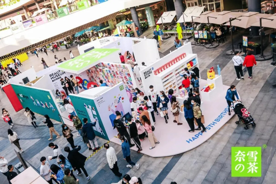 深諳“造節(jié)即造勢(shì)”之道的奈雪,在有“奶茶之都”稱號(hào)的深圳開出了一個(gè)巨型奈雪杯的快閃店。這個(gè)酷似“五房兩廳的奈雪奶茶”,一開便率先在奶茶圈引發(fā)熱議,吸引眾多粉絲前來打卡觀賞。