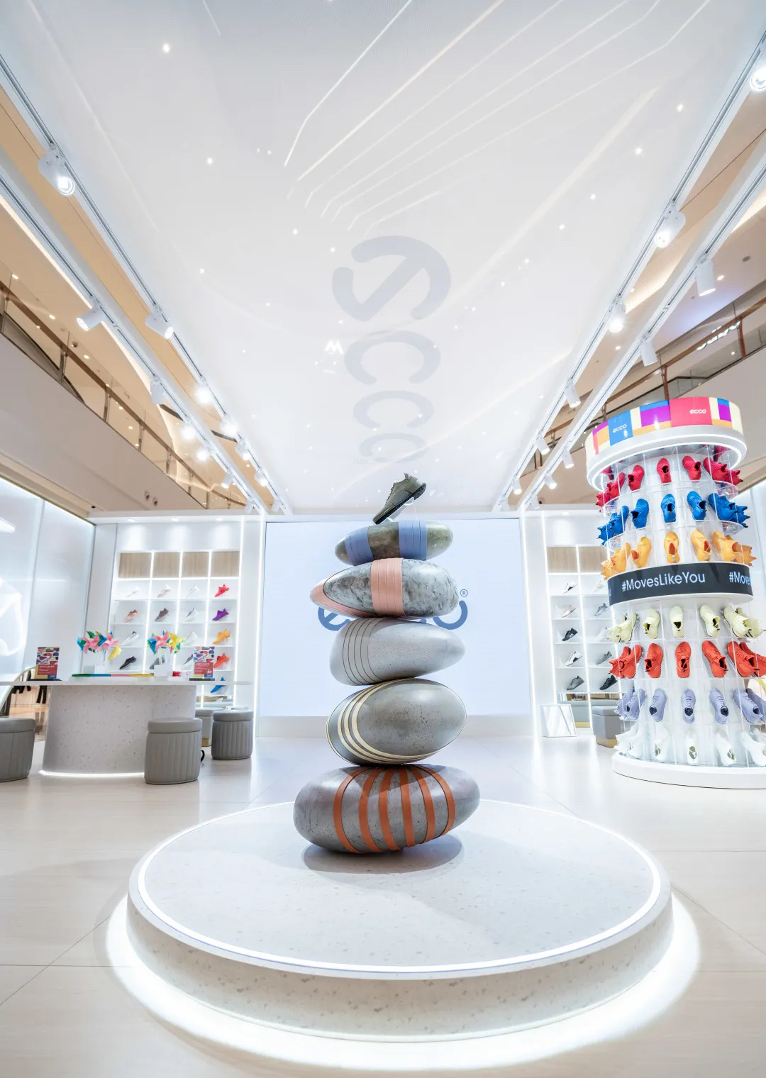 ECCO于萬象城1層?xùn)|中庭,精心打造的自然美學(xué)快閃空間,整整10天,任你解鎖ECCO匠心態(tài)度和自然情懷??扉W店以春夏新品的封面鞋款為輪廓,勾勒出展臺兩側(cè)的金屬弧線造型,四周更是采用輕盈的進口條紋板位面材。從遠處望去,整個展臺仿若懸浮于空中,夢幻中又有幾分科技感。設(shè)計感十足的平衡石藝術(shù)裝置、原生態(tài)的大自然陳列墻,每一隅都將北歐的自然格調(diào)完美展現(xiàn)出來。同時還有互動區(qū)域大自然WORKSHOP工坊啦,在這里,你可以親自動手DIY,打造出專屬自己的“春日小物”!憑著自己的喜好,用熱轉(zhuǎn)印機器DIY出極具個人風(fēng)格的帆布袋,整個過程解壓度MAX!而且通勤款實用性極強,帶著它出街,能量值立刻加滿噢。用五彩繽紛的色卡紙和轉(zhuǎn)軸材料進行裁剪拼接,整個DIY過程簡易又有趣,不一小會,印有ECCO LOGO的多彩定制款風(fēng)車就完成啦,在春日和煦的陽光中,風(fēng)車迎著吹拂而來的春風(fēng)轉(zhuǎn)動,純真的童年回憶瞬間被喚醒。